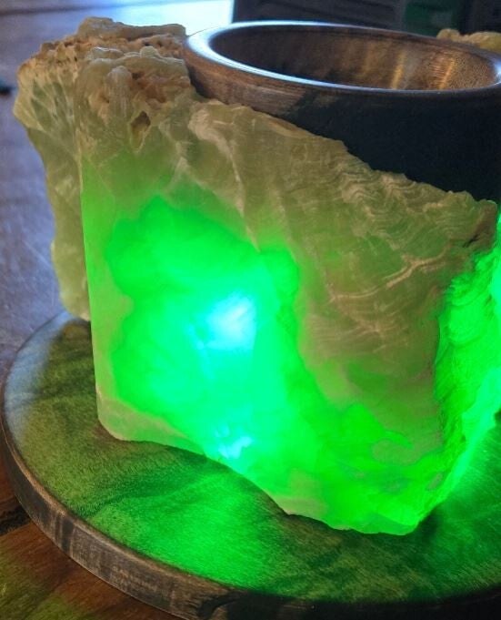 One of my most cherished projects involved a large piece of banded green calcite, previously core-drilled almost to the point of being unusable. As soon as I saw it, I knew its destiny. I designed and crafted a custom base and pedestal, inlaying LED lights to create the most unique lamp imaginable. It's a piece I could sell a thousand of if only more material were available, a true testament to transforming overlooked potential into a dazzling masterpiece.