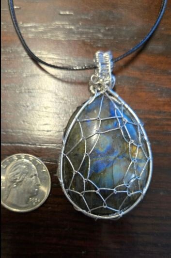 This is a beautiful Labradorite Pendant, S.S wire wrapped dreamcatcher. approximately 2 inch x 1.25 inch. it is large and full of color. see video.