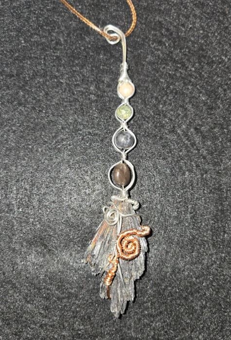 WB-5 Kyanite pendant. with beads - witches broom, #gothic #Halloween