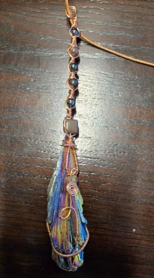 WB-6 Titanium Kyanite Rainbow pendant. with beads - witches broom, #gothic #Halloween