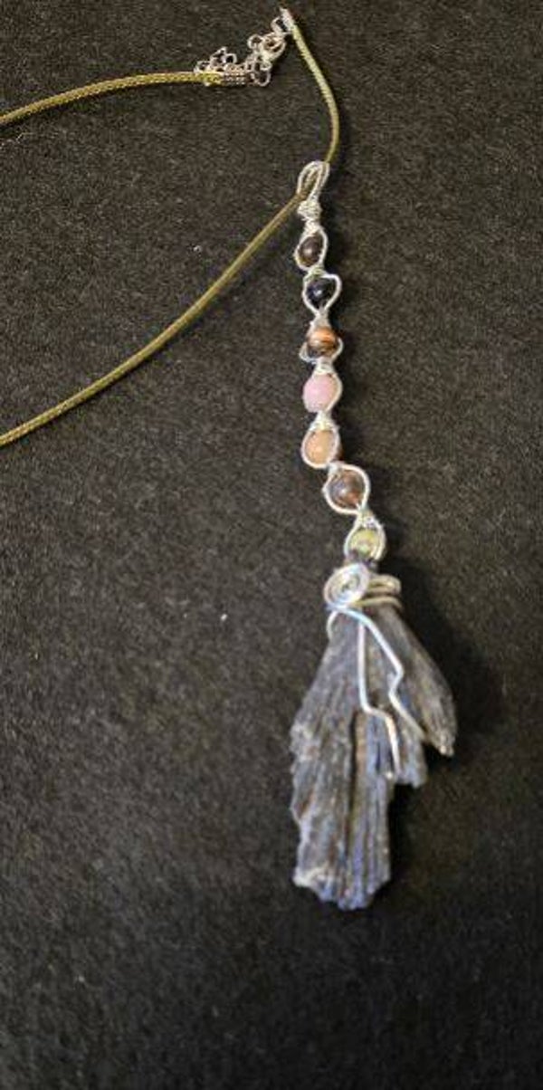 WB-11- Kyanite pendant. with beads - witches broom, #gothic #Halloween
