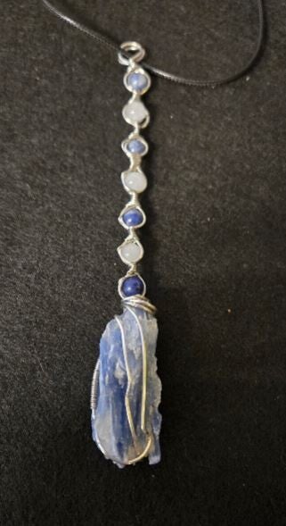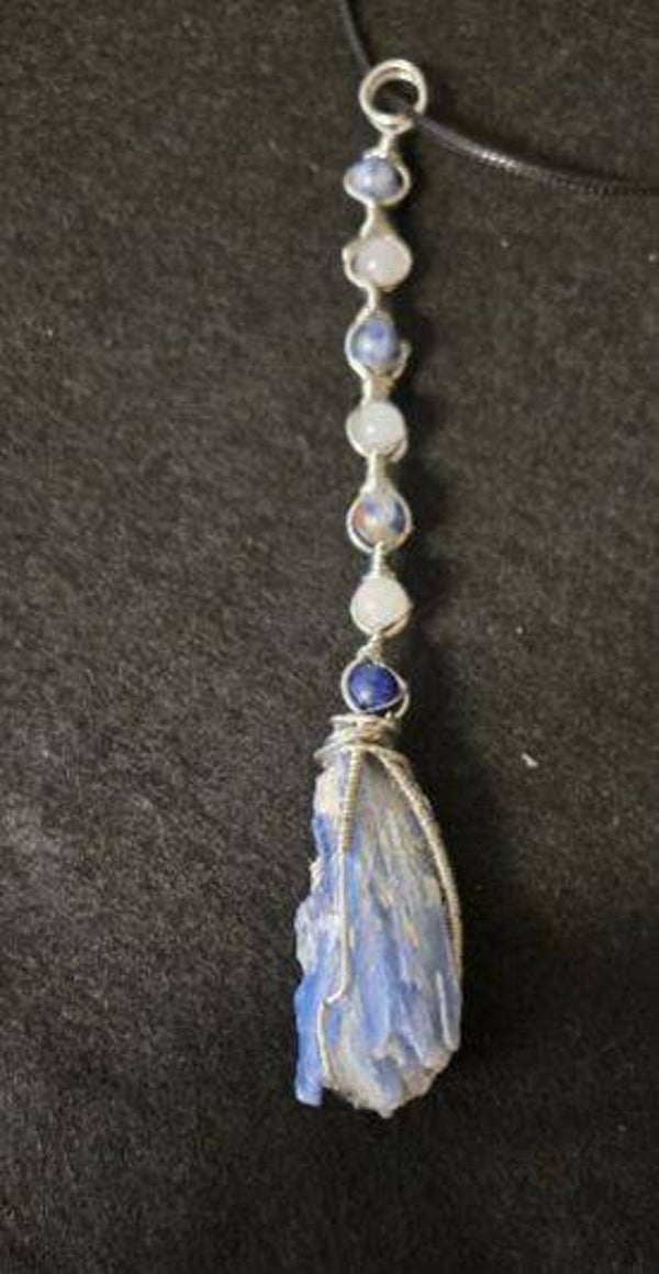 WB-14 Rare blue Kyanite pendant. with beads - witches broom, #gothic #Halloween