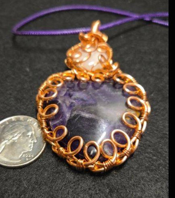 P3- Copper wrapped hand polished Amethyst heart. Deep purple.