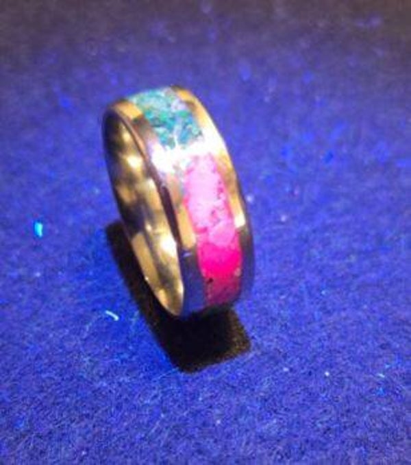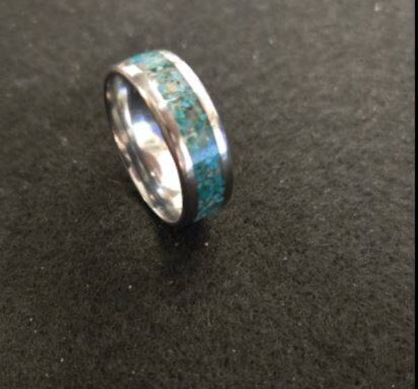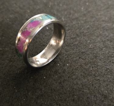 Size 12 Stainless steel comfort fit ring. Ruby flake and turquoise
