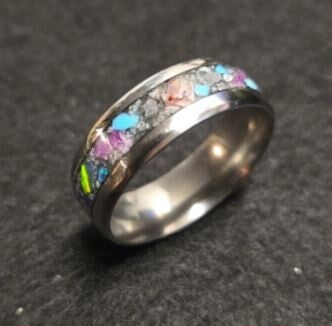 Inlay U.V reactive. glow stone, ruby flake,opal and turquoise