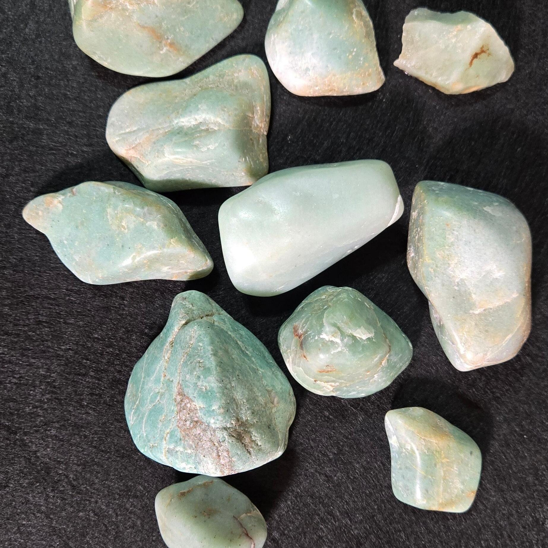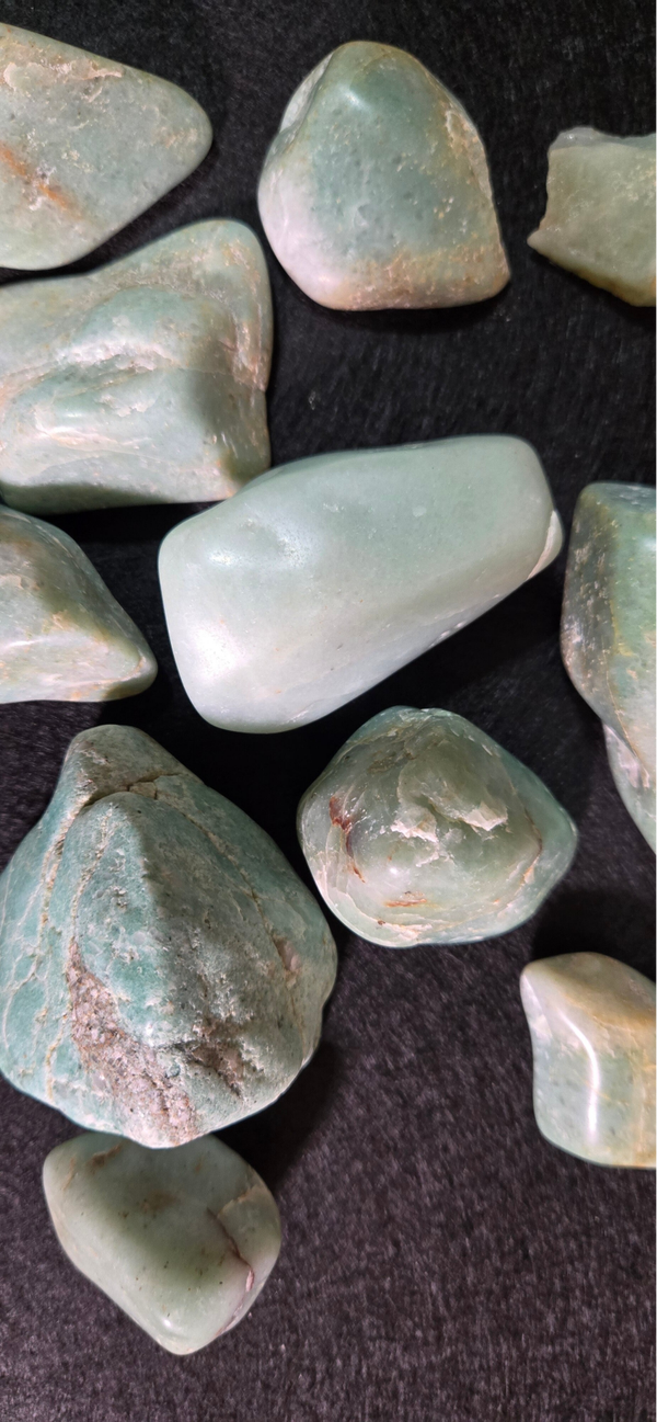 Utah green quartzite, olished, rando, shapes and sizes. 1 inch x3 up to 4 inch.