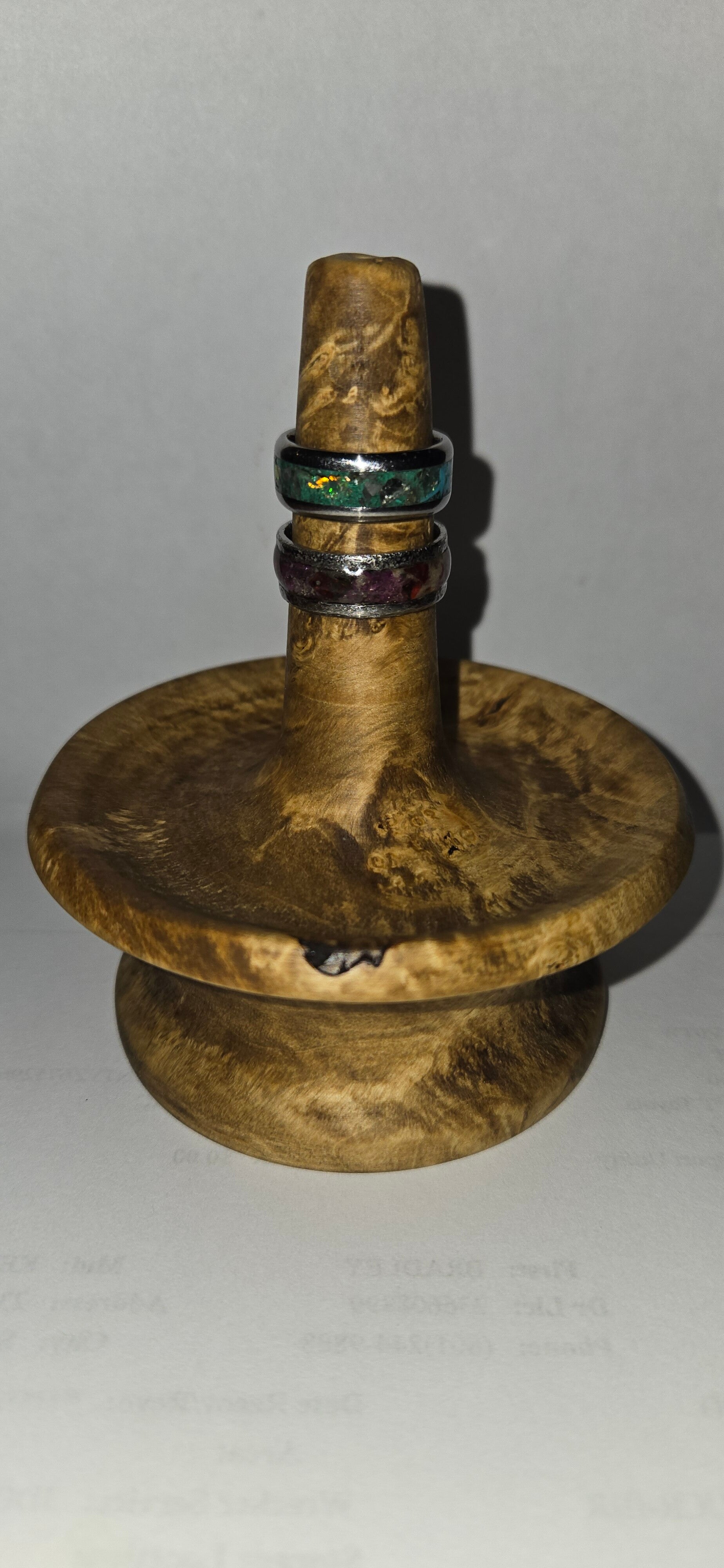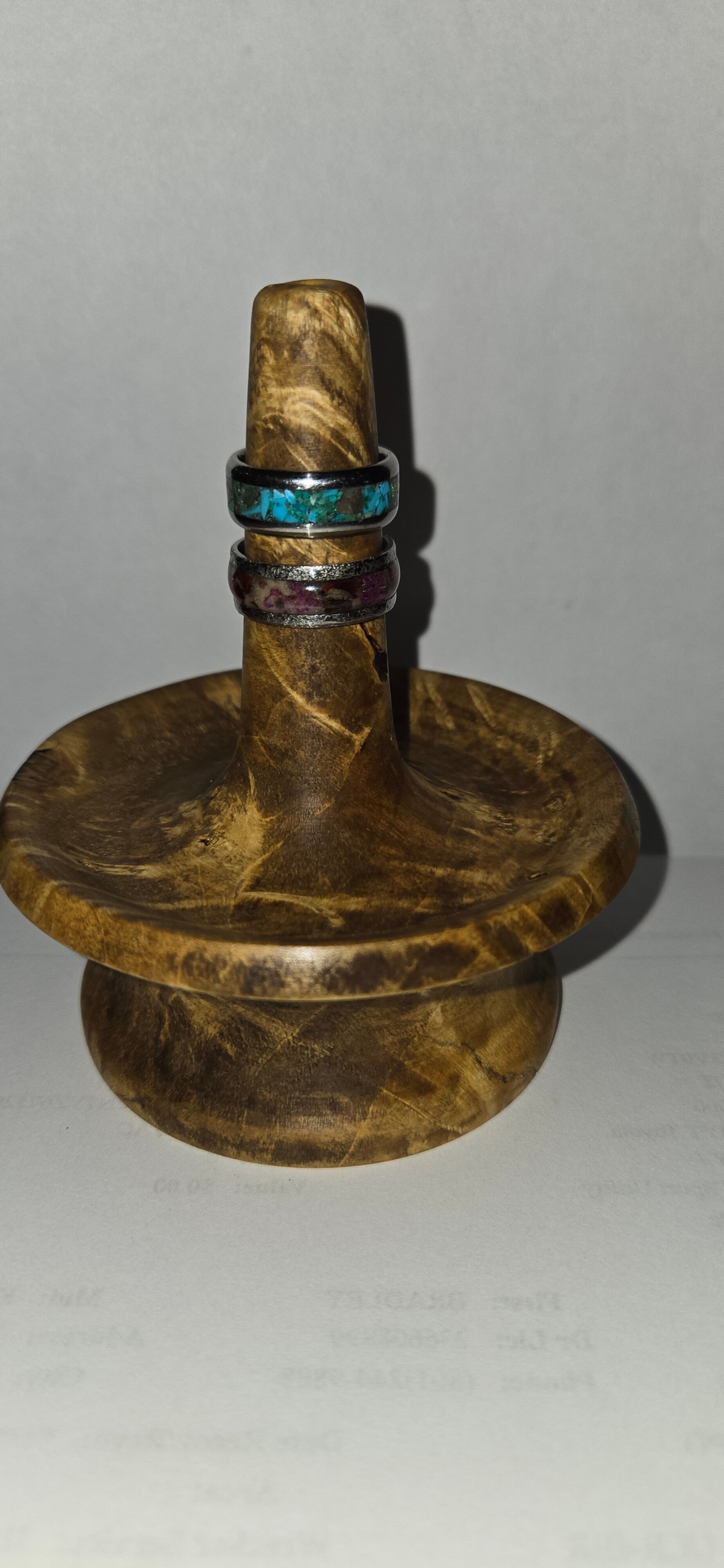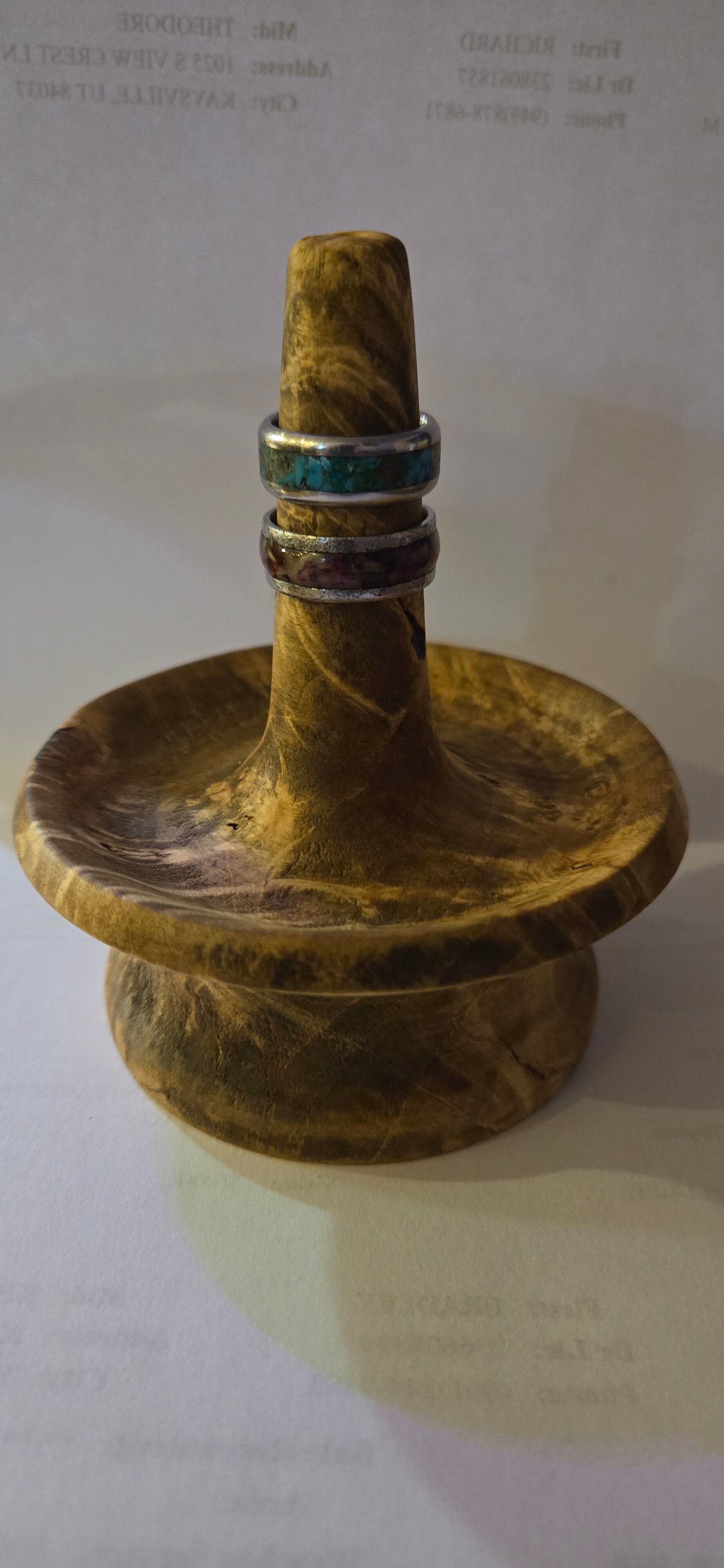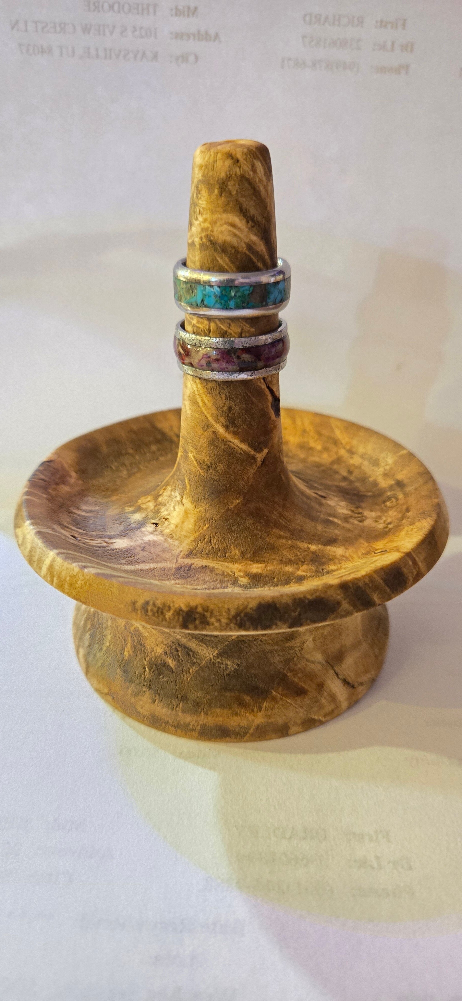 Hand turned ring holder. Beautiful polished burl.