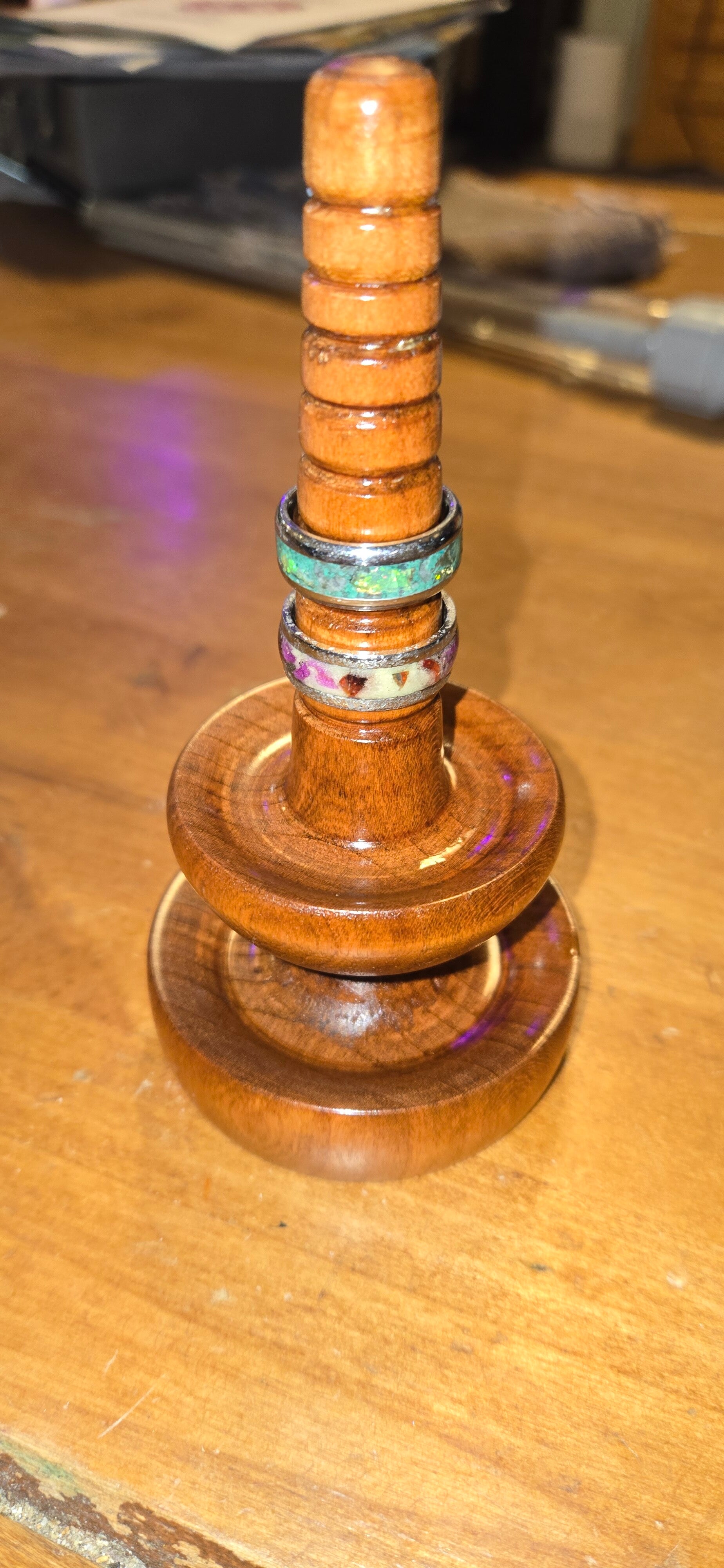 Hand turned ring holder. Beautiful polished Cherry.